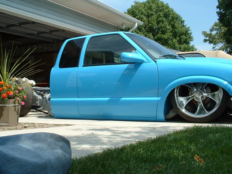 Airlift Gen II front and rear kit, ART upper control arms 5 gallon tank, silver powdercoated frame, Baer front brake kit, Baer rear disc brake conversion and a 3 1/4" bodydrop.