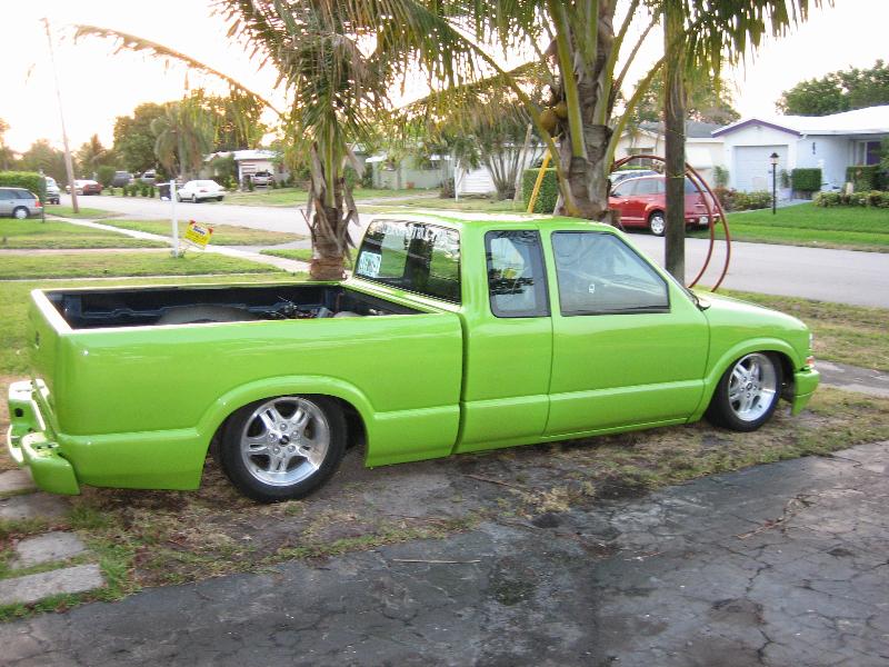 Shaved antenna, brake lights, third brake light, doors, hood pissers, and mirrors. Put on billet motorcycle mirrors. Pained it a very loud lime green