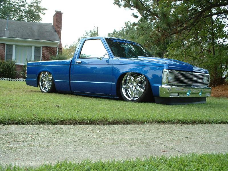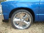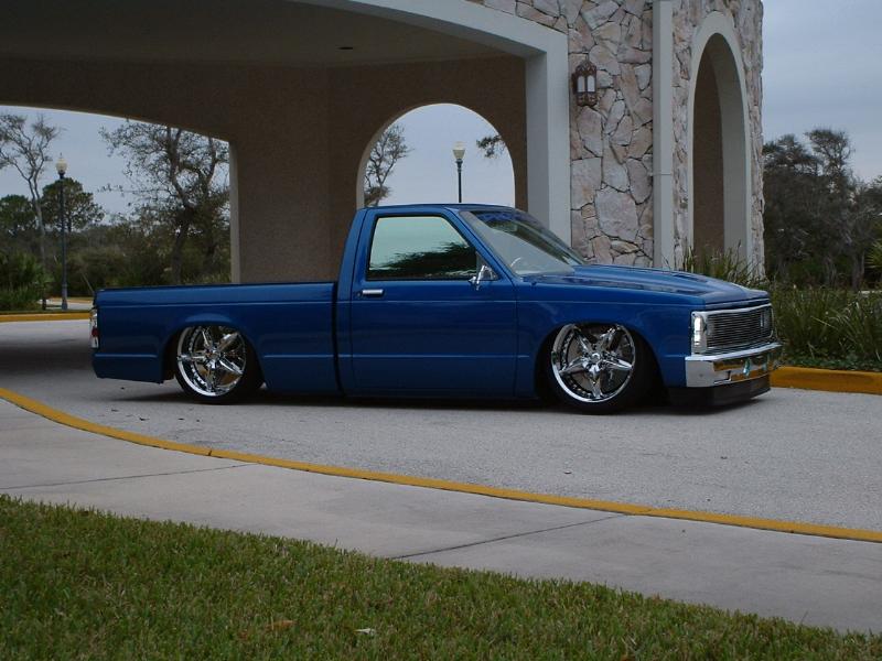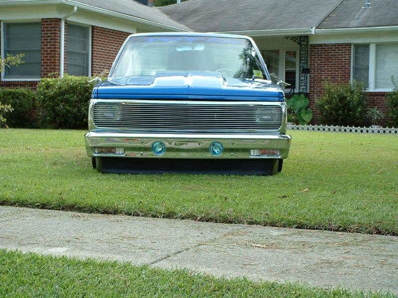 Debadged, shaved tailgate handle, molded rollpan, frenched antenna, phantom grille, smoothe chrome bumper w/ fog lights, Arlin Ness side mirrors, Goodmark cowl induction hood