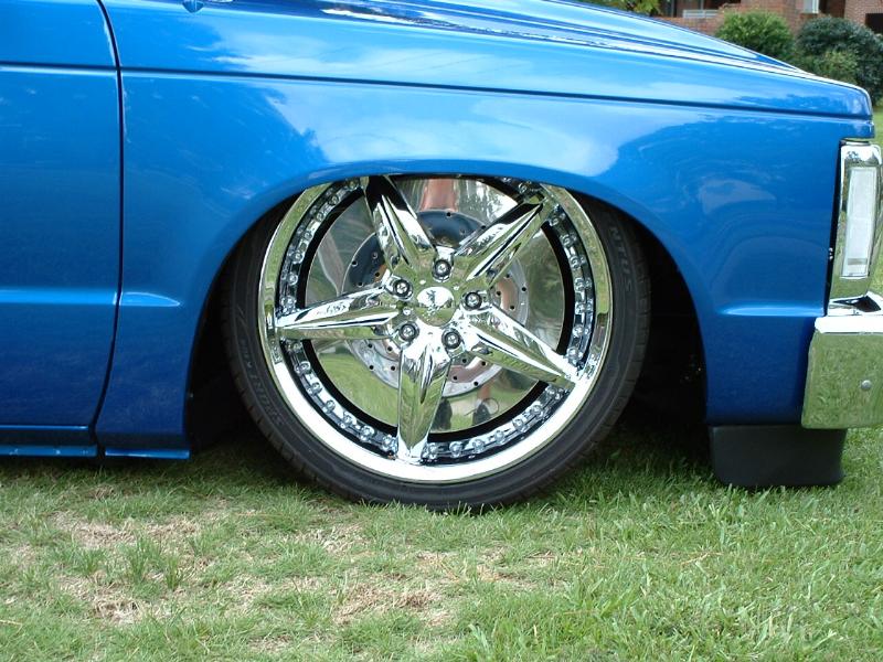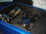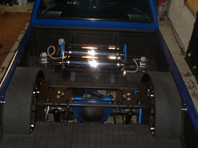 4 bags, 8 1/2 valves, 2 450 Viair Compressors, 2 chrome 5 gal tanks, # Link from SUICIDE DOORS that has been powder coated kandy blue