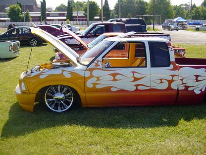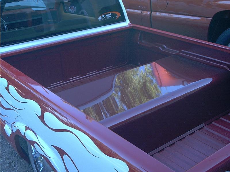 lights maltese cross mirrors. and a goodmark cowl induction hood. Molded in roll pan. CUSTOM BED PAN AND SHOCK MOUNTS, flamed grille inserts,color matched spray in bed liner