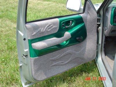Full tweed with flamed door panels and flamed headliner. Matching green dash pieces.
