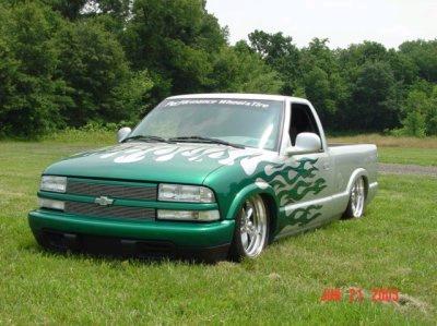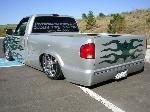 Flamed, shaved antenna, hood squirters, and molded rear pan. Rear tubbed for 22's, but decided against it cuz it looks gay