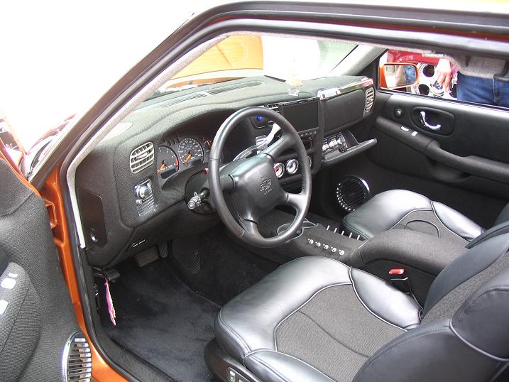 full custom hand stitched tweed and vinyl. chopped power blazer seats, billet everything. relocated climate contorls, custom console, door panels, 3rd door and dash. custom bed.