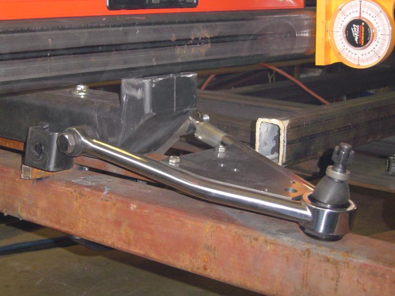Modified Fat Man Fab mustang ii IFS. 54" track width. Stainless control arms. Manual Rack and Pinon. Wilwood Dynalight front brakes. Moser 9" rear. 3.70 gears.