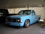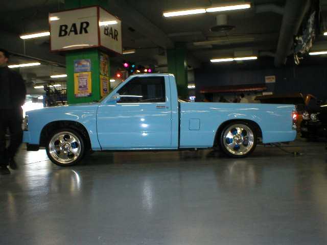 paint:Dupont chromabase baby blue and volks beetle beige.airbrushed skulls and flames design all around & on hood and bumper.shaved antenna and tail gate handle a molded steel rollpan and a 94 gmc front end.M3 style mirrors w leds,euro taillights,clear corners and bumper lights.