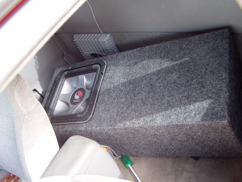 12 inch kicker with ported box, 600 watt rockford amp, pioneer head unit.