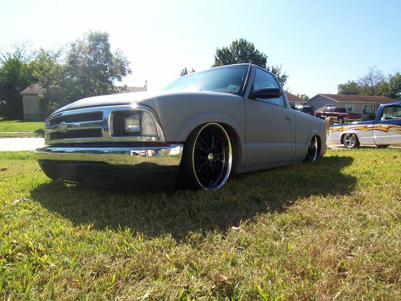 debeers custom mixed red with realistic fire, shaved gas lid, shaved tailgate with frenched box, molded roll pan,98-02 front bumper and valance, billet grille