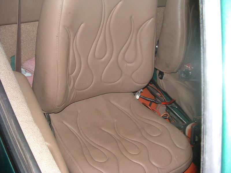custom flamed leather seats, billet wheel, flamed mirror, sliding rag,driveshaft tunnel lifted floor at trans.about an 2 1/4in.