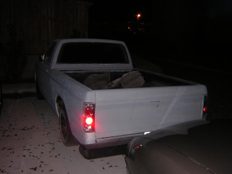 Primer grey, euro tailights, chrome front grill, lots of overspray but that will be gone soon
