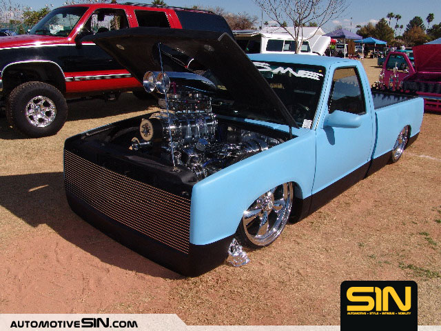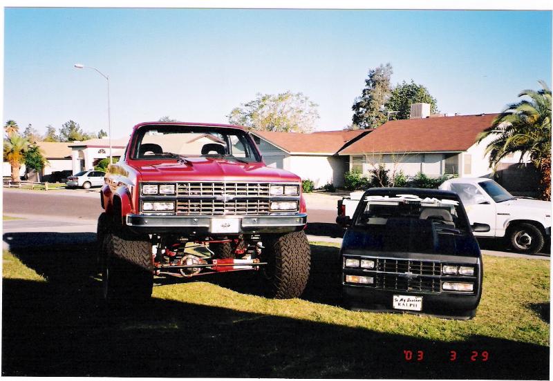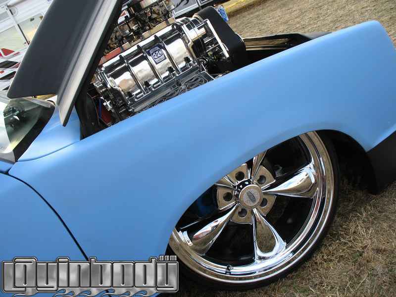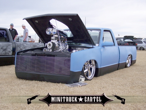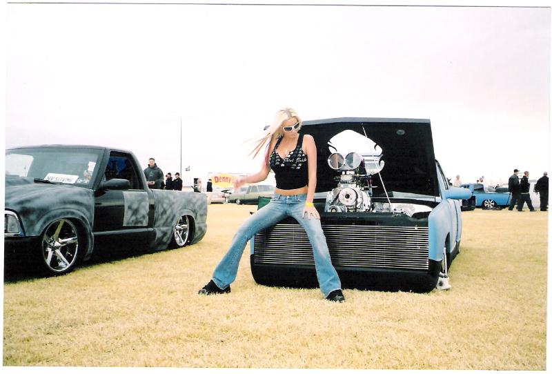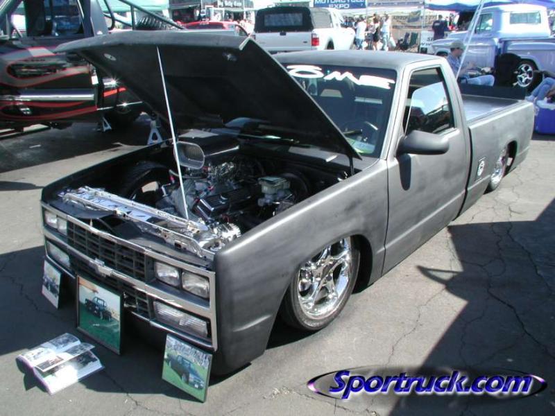 everything shaved,bodydropped,6 inch cowl inducted hood,full size blazer billet grill cut down & front end molded to fit ,flames cut in hood & custom skid plate