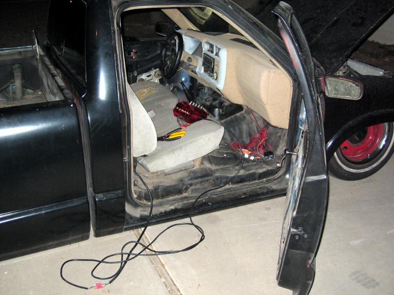 Steering wheel, bench seat, switch box.
