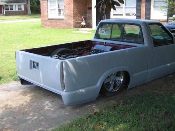 shaved everything with cadi tails and license plate box in tailgate with gas filler neck in it