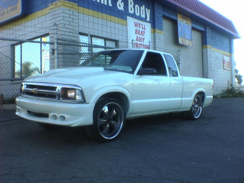 cadilac pearl off/white paint, shaved everything but the gas door, all around hyper whites and front clears. bed cover,molded rollpan street s front bumper