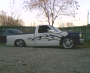 custom paint, 5" body drop, shaved, dragged to death holes in rockers, chewed up roll pan!