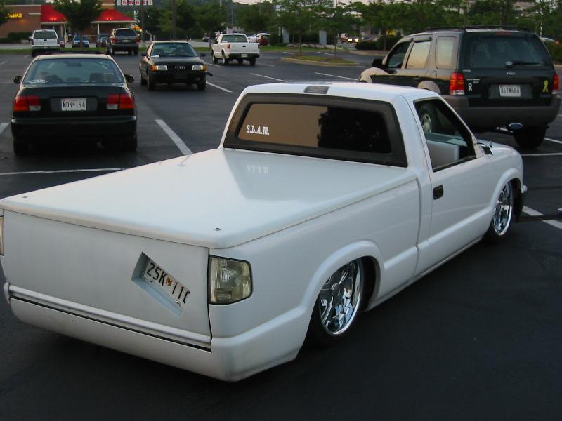shaved rear end, roll pan, frenched tag box, billet mirrors with diamond plate panel, clear rear lights,clear corners,