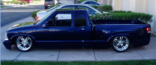 color matched-ss electric mirrors, door handles, front grill bezel, billet grill, billet bow tie, tyc cf tails, shaved gas door, shaved tail gate handle, shaved front step pads, shaved rear steps, roll pan, smoothed out bed, color matched washer squirters, apc diamond healamp housings, inpro diamond clears, custom led third brake light, *in process of body drop*
