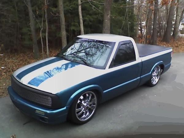 Phantom Billett Grille, Extang vinyl bedcover, factory special paint, with racing stripes added on hood, tribal windshield decal, roll pan, tinted windows, m3 Sports mirrors, euro taillights,