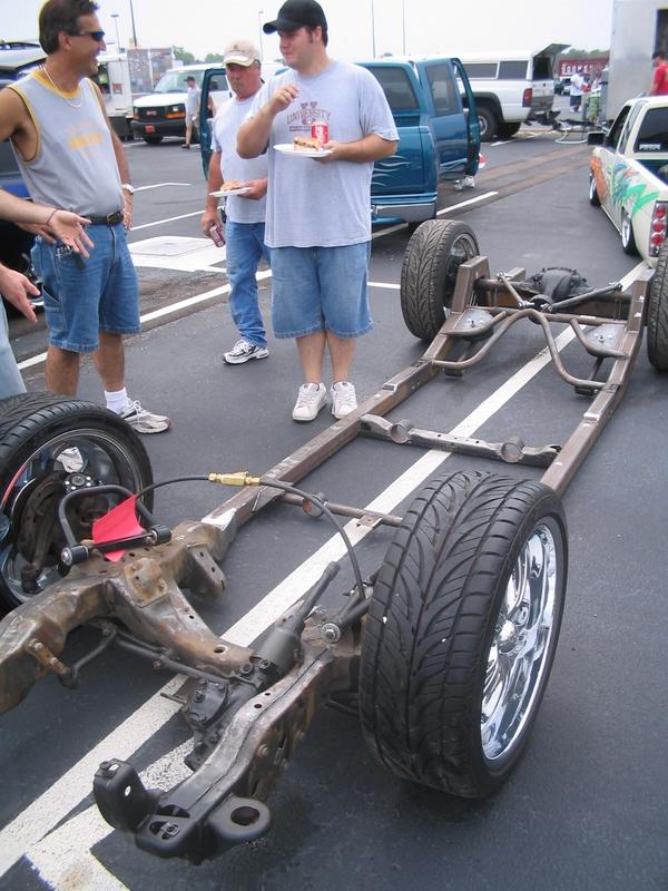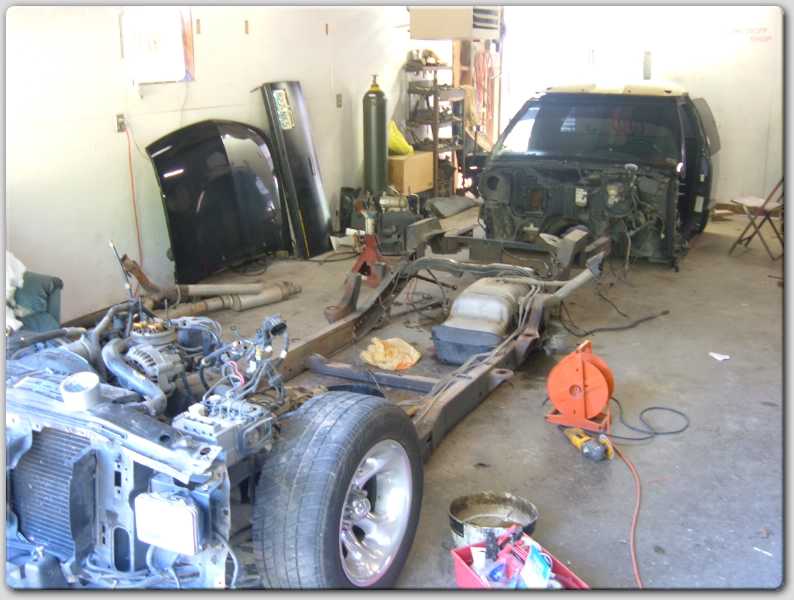 bunch of shit......Cal combo, Smooth Bedfloor, Tilt Bed, 18+ 20's, Hidden LED Tailights, Custom Envoy/01 S10 Front Clip, Fiberglass console and speaker box, custom envoy cowl hood, corvette doorhandles, Black and gunmetal paint. IT WILL "debute" at Spring Bash 06.or help me god I will kill kyle