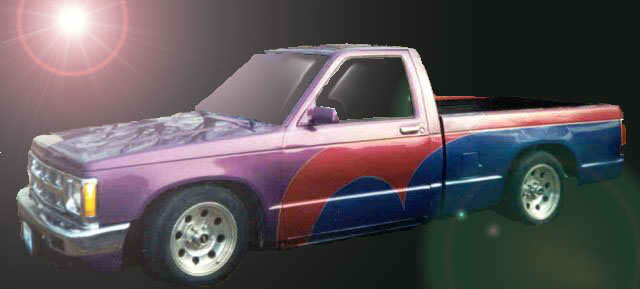 cab is off a 1989 s-10 this was done to replace the cab that i had put a convertiable conversion on.... Not a good idea in the mid west.....toyota 2wd front bumper....welded on rollpan with frenched drop tag set off to the drivers side.
