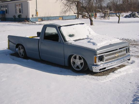 6-3/4" body drop. still in the project stage. Recently primed it but have to touch up the shaved body lines and cut the rockers off and 3/4 of the door off as well.
