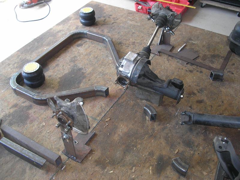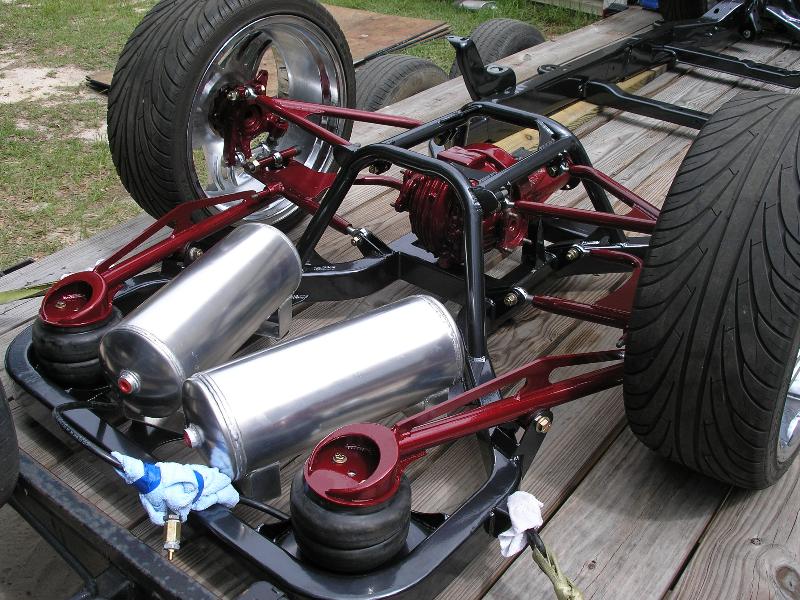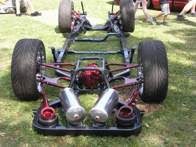 87 Mazda Rx7 independent rear suspension built cab back, 5 lug conversion for the rear end off of a turbo version. 2, 3 gallon aluminum tanks/ York 210 ED compressor, made from oasishp1000 / 3/8 Accuair valves / Slam specialties rs62's and 7's. 2in bell tech Drop spindles.