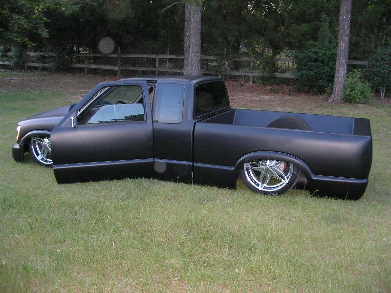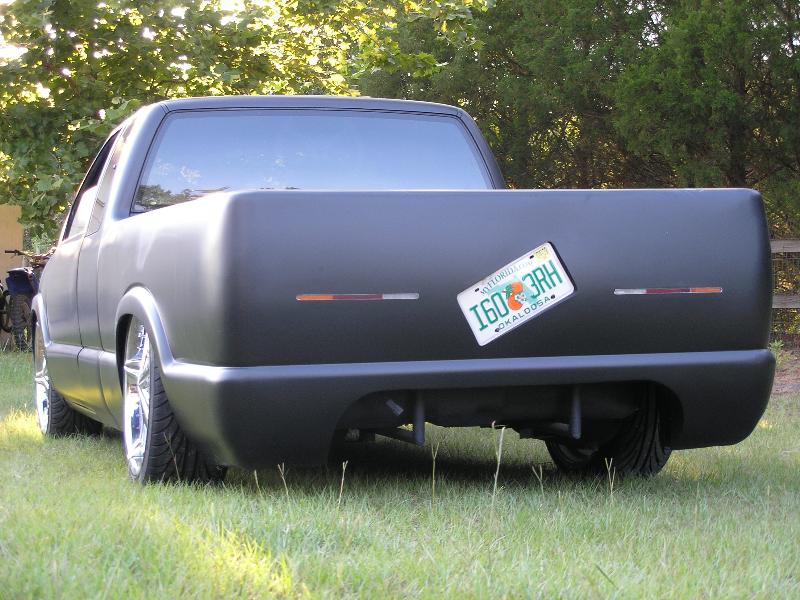 Shaved antenna. gas door behind tag. fully 18 gauge sheet metal bed floor. Suicided Doors. chrome motorcycle mirrors, and billet ball milled wipers.
