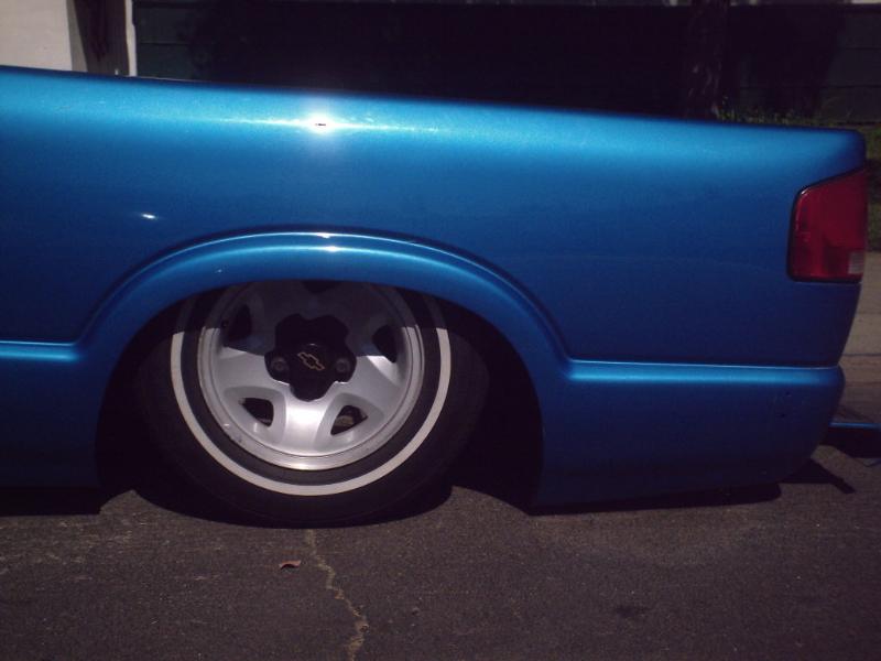 Factory blue paint with shaved tailgate handle and frenched license plate box