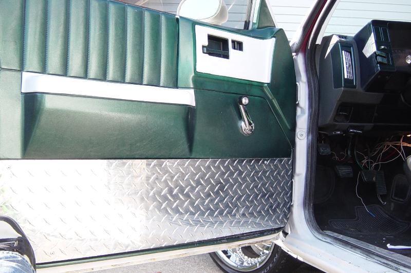 finish the interior with tweed and shaved dash paint job(Candy Green), air ride