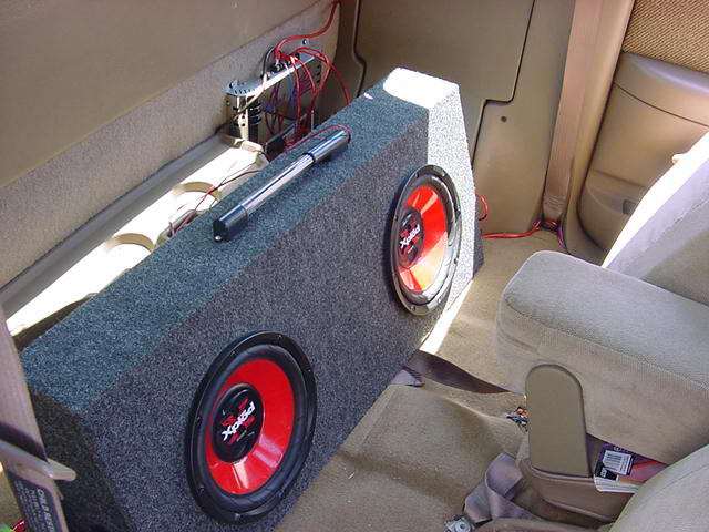 kenwood cdplayer 45watt, 2 10 sony explodes, and a american pro bass machiene 200 watt 2channel (p.o.s)