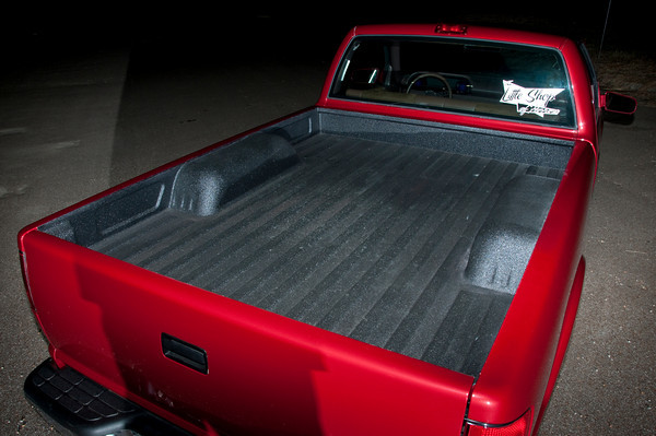 b/d 2.75" and raised bed floor line-x'd. Left all factory handles and bumpers to keep the look. Cal-Vu mirrors. Shaved only the hood squirters,front bed seams, fender trim holes and emblems.