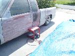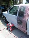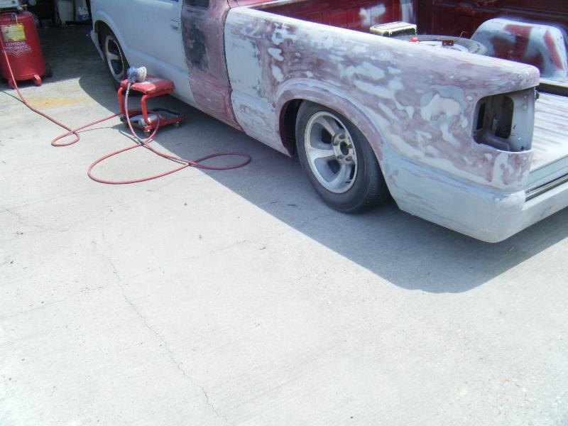 shaved mirrors,shaved gas door,filler neck for the gas in the bed,Shaved pass side door,shaved 3rd brake light,shaved taillights.shaved antenna,shaved tailgate handle,Shaved license plate box on roll pan,Molded-in roll pan,custom star license plate bracket mounted in bed by tailgate,ram air style hood,swaped front ends from a 99 s10 truck to a 97 s10 blazer.I have a 2tone primer paint job b