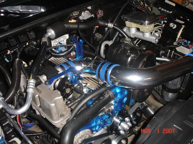 Mostly stock 2.2L. Billet underdrive pullies, all other pullies chrome, electric fan, new plugs, wires, coil packs, header and various chrome and powder coated pieces.