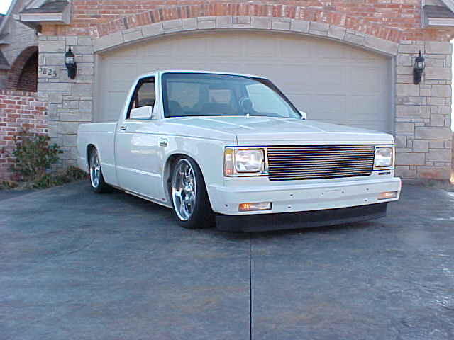 Billet Grill, Shaved antenna, molded in rollpan w/license tag in the center, shaved smooth tailgate, tailgate handle relocated to inside of tailgate, Painted to match front bumper, Street Scene sport mirrors, diamond cut Halogen head light conversion with relayed day time running lights, crystal eye bumper lenses, crystal eye corner markers, FBI billet grill w/19 bars, FBI Billet license plate tag, New front air dam, All new exhaust: 2-chamber Flowmaster muffler, no cat, all relocated 2 & 1/2" pipe w/3" outlet dumped in front of the differential, Painted (red and yellow front brakes & red rear drums) New transmission seal, soft clutch with quick throw pressure plate, new front brakes, 2 & ½” sway bar off 93 s-10 blazer, new sway bar bushings, master flow fuel filter, new higher flow fuel pump, 3/8 thick transmission protector skid plate.
