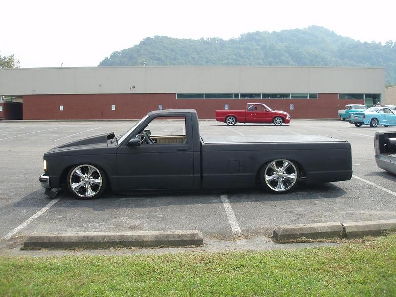 Bagged with airlift bags, 1/2" gc valves, viar 450, 5 gallon tank, and suiced doors s10 specific 4 link and brackets.... Lays frame with all inner fenders / wheel tubs still on truck.... Thanks to Jason morgan, and jason patton for the awesome suspension work!!!