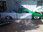 shaved handles, squirters, mirrors,3rd brake light, cali combo with colorado lights flipped upside down,38x40 electric rag, LineX bed, 3.75 inch chop