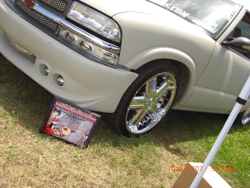 Shaved doors, billet antenna, euros, LED line of fire, frenched plate in tailgate, sport mirrors with LED, speed grille, clear corners, panther blunt 20" wheels, tinted windows