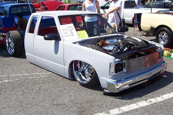 shaved everything even the cab seams, chrome front end, billet grille, full skin with LED's