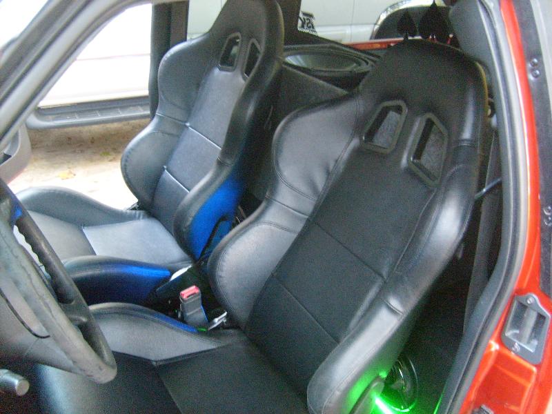 5" moroso tach, custom racing bucket seats, and l.e.d lights under seat