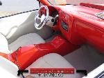 Fully shaved, with all metal steps, sheetmetal bed, and a 35x40 ragtop, painted viper red, and pearl white 2 tone with green stripe in the middle.