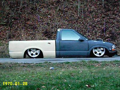 bodydropped, shaved, sheetmetal bed, high build primer, cal hood.