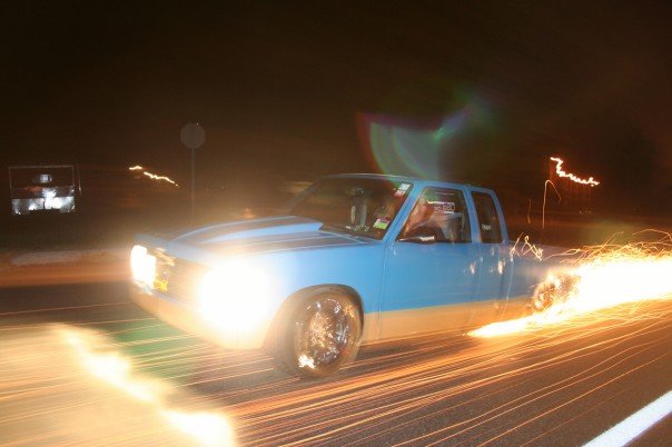 Modified front wheel wells for 20" wheels; relocated battery to bed; relocated fuse block up 6"; hand made front bumper; 91 chevy grill w/billet insert; 36X36" sliding rag top; shaved handles, locks, gas door, antenna, wiper cowl, firewall, tail lights, body lines; suicide doors; smooth full skin combo(swing out); hide-a-way license plate; projector headlights; led m3 mirrors; blue/tan primer/sealer; LED tail and side marker lights