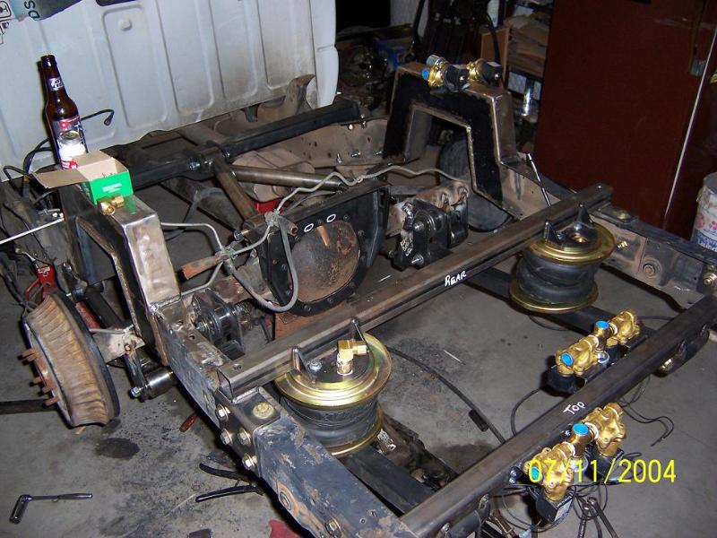 chasis tech spindels 5-link from suicidedoors. oasis XD2000 compressor, 2-5 gallon tanks. 8 1/2" Parker valves. Everything 1/2" with 5/8" line. dakota digital gauges, 10 switch box, all airlift 2b7 bags.