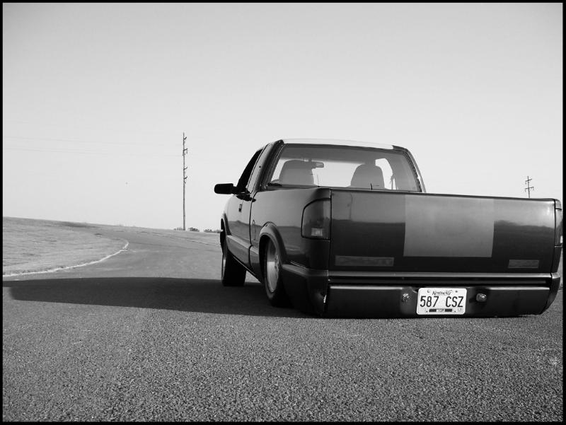 shaved hood squirters, antenna, 3rd brake light and relocated tailgate handle. ss cal-vu mirrors, gm rollpan.