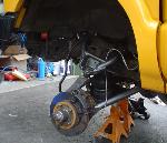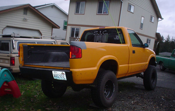 Custom lift shackles and flip kit in the back, Long travel tubular control arms, 3" lift spindles, bagged with 1/2" port firestones, Street Issue Customs bag cups, single Viair 450c and 5 gallon tank for now, 3/8 smc's, 1/2" line, 175 psi