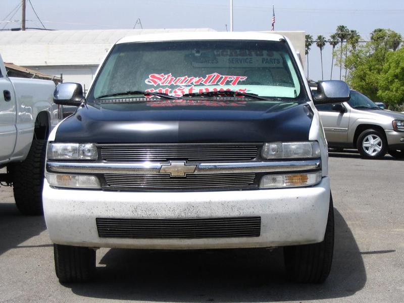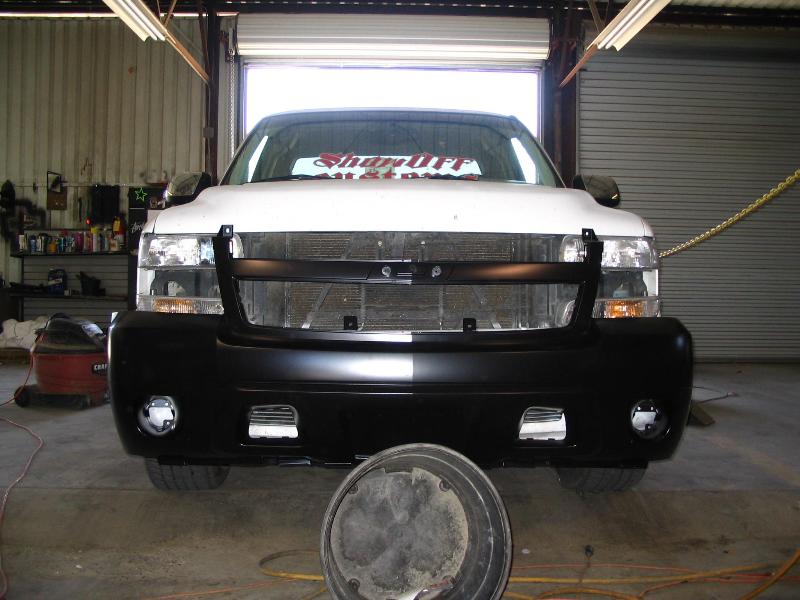 Rocking the white primer front and back! Shaved Tail Lights, FBI Rollpan welded in, FBI Tailgate Handle Relocator, FBI Licenseplate Box Frenched in Tailgate, Shaved Door Handles, HD hood...Rockin magnetic trailer lights for now. 07 Tahoe front end is still under construction...
