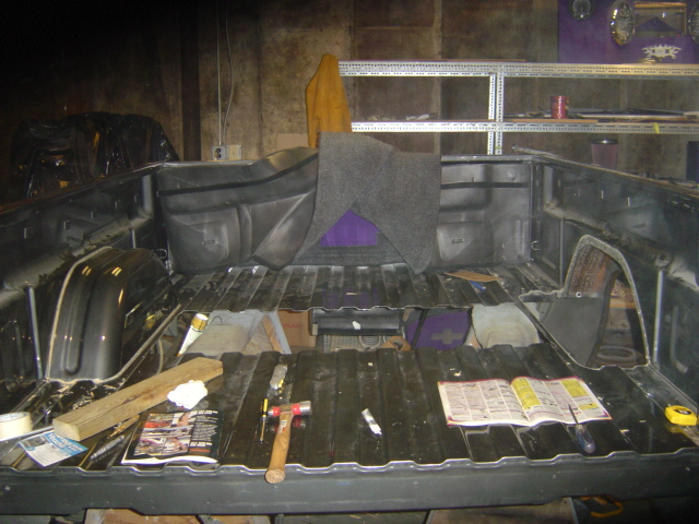 Shaved Taillights, tailgate, gas door, door handles, molded roll pan, electric rag top, billet grill, sport vision mirrors, billet 3rd brake light, clear corners. Gray stock paint with purple flames and green pin striping, full smooth bed with glass window, And Purple Neons All Around.