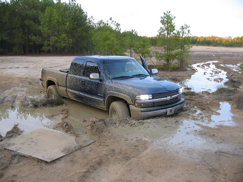 dk. blue, tinted windows, billet grille, '04 tails, 3/4 ton black fender flares, black housing clear corners, Sylvania Xenarc HID conversion headlamps........SOLD IT!!!