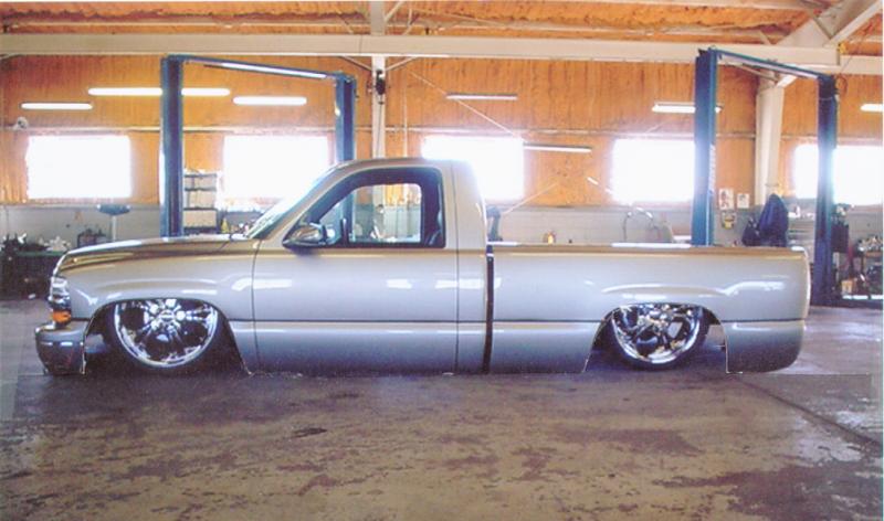 Shaved doors, gas door, stake pockets, taillights, tailgate, 3rd brake light, Crystal Eyes mirros, LEDs, tubbed firewall