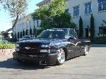 All painted BMW Carbon Black (jet black base with blue and silver metallic) with graphics and pinstriping by Steve Vandemon using House of Kolors paints. Shaved doors handles, 3rd brake light, GM Parts SS front fascia,